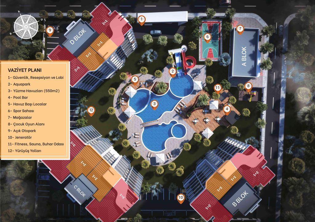 3+1 Daire (C Blok) Brüt 125m2 Tamamı Havuz Manzaralı